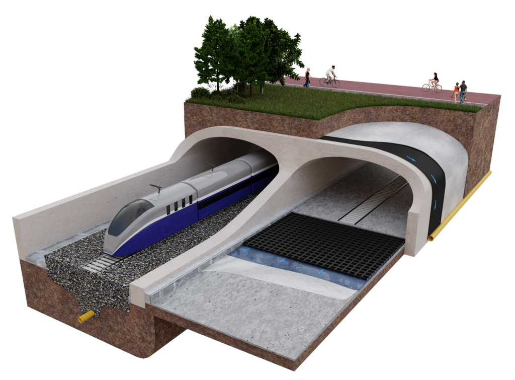 The cover over the tunnel becomes “green” when it is designed from an ecological perspective and minimises the impact of the structure on the surrounding environment. Part of that design consideration should be the movement of materials during the construction phase which can create a significant carbon cost. Using ABG Deckdrain has been shown to offer a carbon saving of more than 90% when compared to traditional methods.