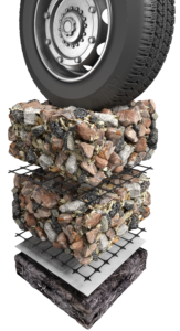 ABG can offer a stabilised, reduced road foundation thickness for weak subgrade conditions by incorporating the benefits of geosynthetics in terms of improved layer stiffness/improved drainage conditions within the AASHTO pavement design method. The AASHTO method assumes that the strength of the subgrade and the unbound layers will remain fairly constant over the design life of the pavement. For this assumption to be correct, the pavement structure must have excellent drainage.