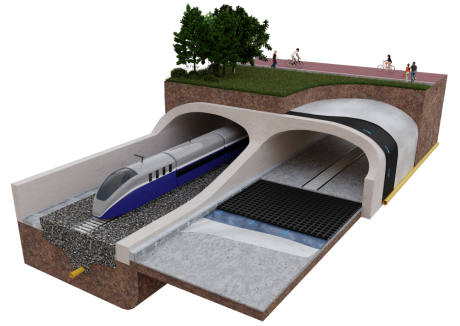 For cut and cover tunnels, Deckdrain can be used for the external drainage layer