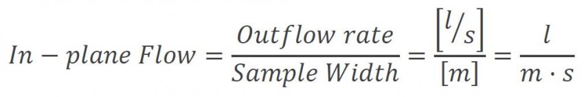 In-plane flow is defined as the outflow rate (in litres per second) divided by the width of the sample tested.