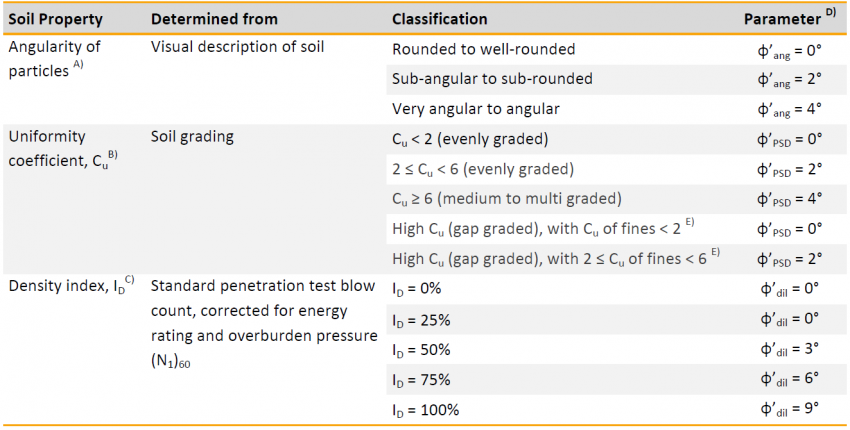 Table 2: Sands and Gravels – Determination of soil shear strength parameters (BS 8002:2015)