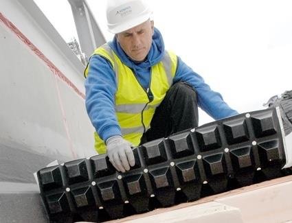 Roofdrain allows the storage of water within the nodes of the HDPE core, whilst facilitating the efficient drainage of any excess water away from the roof. This helps prevent the root growing media from drying out during dry periods and from becoming waterlogged during periods of wet weather.