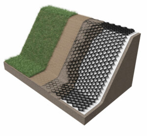Erosaweb geocells are all designed to confine and stabilise cover soils on steep slopes and can either be pinned or anchored as necessary. The honeycomb structure of the product also reduces surface water run off velocities to mitigate soil erosion.