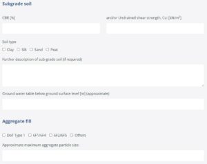 ABG can design a stabilised foundation solution to compensate for lower CBR strength values (i.e. less than 2.5%) and achieve the foundation class requirements. The design for all foundation areas shall be based on achieving a foundation class selected from Table 3.7 in CD225 :