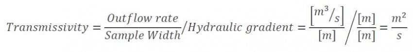 The test method for measuring transmissivity (or hydraulic transmissivity to give it its full name) is defined by ASTM D4716 and the test method is effectively the same as EN ISO 12958. The difference between these two methods is in the reporting of the results. Transmissivity is defined as the outflow rate (in cubic metres per second) divided by the width of the sample tested and the hydraulic gradient.