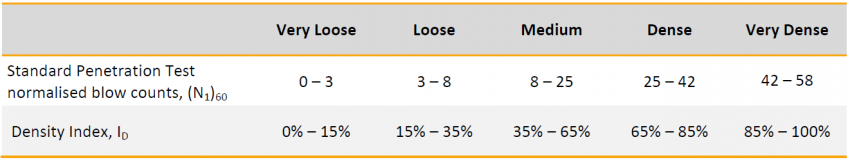 Table 3: Sands and Gravels – Correlation between normalised blow count and density index (BS EN 1997-2:2007)