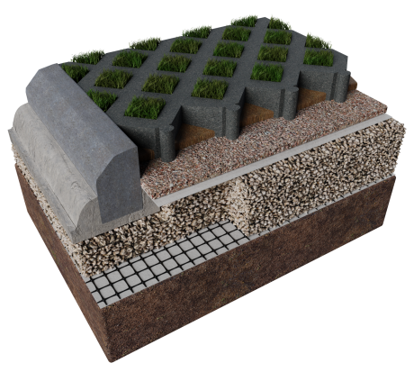 The solution to a successful and sustainable grassed car park is to specify a well designed and professionally engineered grass reinforcement system, capable of stabilising the pavement surface, whilst remaining free-draining and protecting grass roots to enable healthy grass growth. The grass paving or grass reinforcement system’s structural surface must also retain and protect the soil fill, but remain sufficiently porous enough to allow surface water to drain freely through into the underlying profile. The anticipated frequency of use must always be taken into consideration when planning the development of a successful grass paved parking surface.